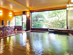 館内は木の温もりにあふれ、肌に優しい伊東の湯は庭園の情緒を感じる露天風呂と大浴場にて源泉掛け流しでご入浴いただけます。また自慢のお料理は、落ち着いた雰囲気の和風ダイニングにて伊豆ならではの会席膳をお召し上がりください。